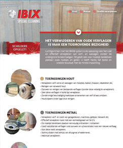 Met de Ibix toestellen kan u tevens ook luchtgommen. Vanwege de lage druk kan men oude verflagen, vernis, was en etc. verwijderen zonder de ondergrond (bv. hout) te beschadigen. Hieronder kan u een offerte aanvragen.